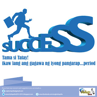 Ang tagumpay ay nagsisimula pa lang kaya dapat araw araw nating gawin ang mga dapat nating gawin upang hindi tayo mahuli sa pagsikat ng araw. Sabi nga ni Tatay ''Ikaw ang gagawa ng iyong pangarap''....period